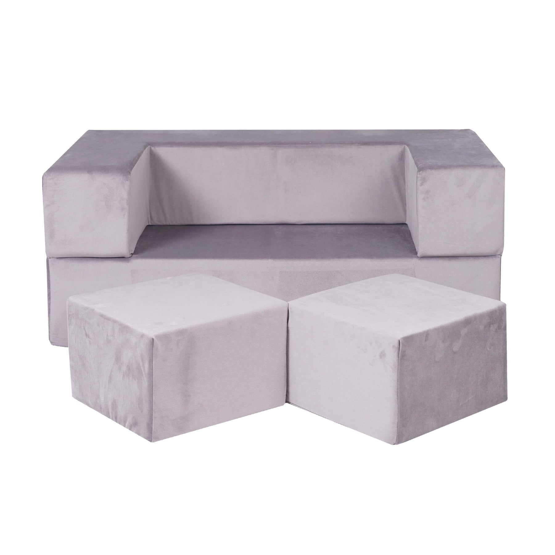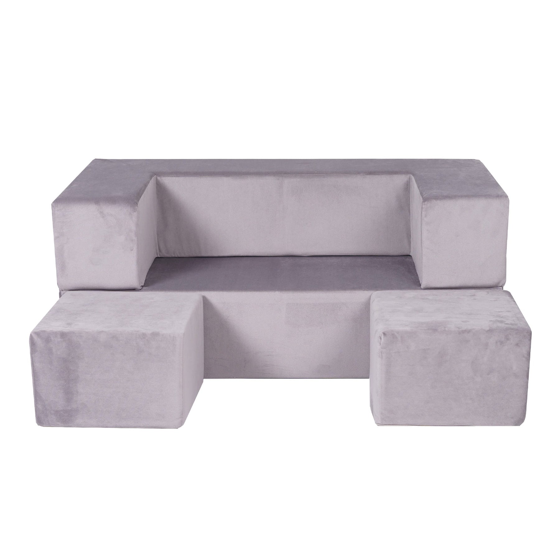 Additionally, the sofa comes with two small poufs that can be used as support during playtime. They are not only an additional decorative element but also functional accessories that enhance the joy and convenience of using the sofa.