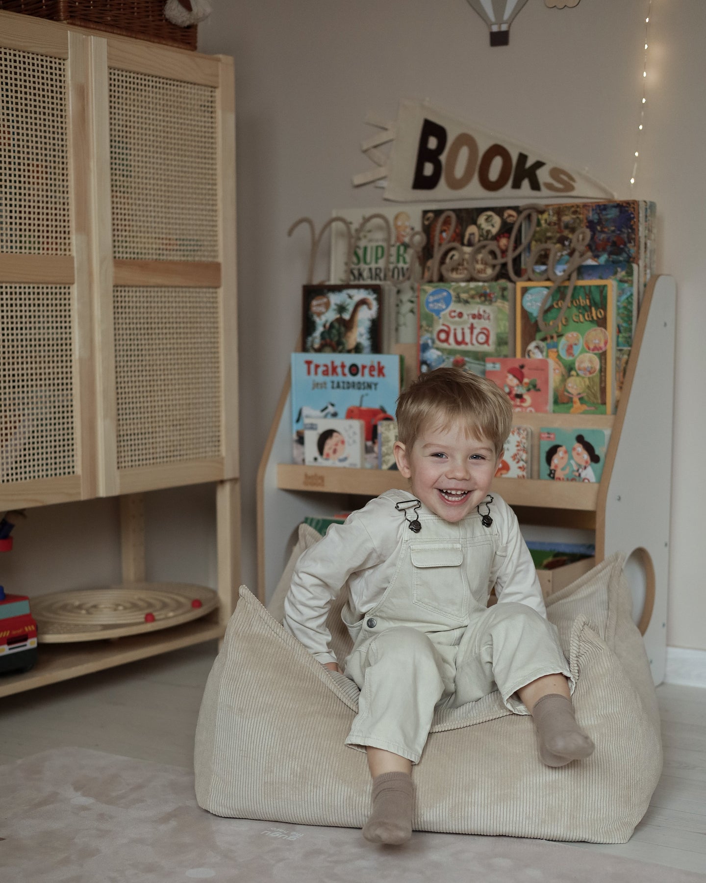 It provides space not only for sitting but also for games and creative activities. Made from the same, pleasant-to-the-touch corduroy as our other furniture, the pouf is both stylish and extremely practical. The 100% polyester material guarantees ease of cleaning and durability. Thanks to smart design, the pouf has a separate cover for the filling, which allows it to be removed and the cover hand washed, keeping the furniture in impeccable cleanliness. In addition to its aesthetic function, our square pouf also has an educational role, encouraging children to play and learn independently. The unique design with a lower center provides additional fun, serving as a secret hideaway or command center for little leaders.