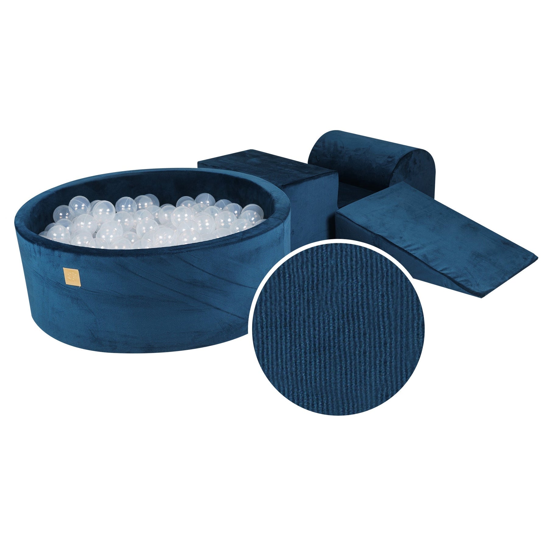 Velvet Corduroy Blue Marine Foam Play Set with Round Ball Pit